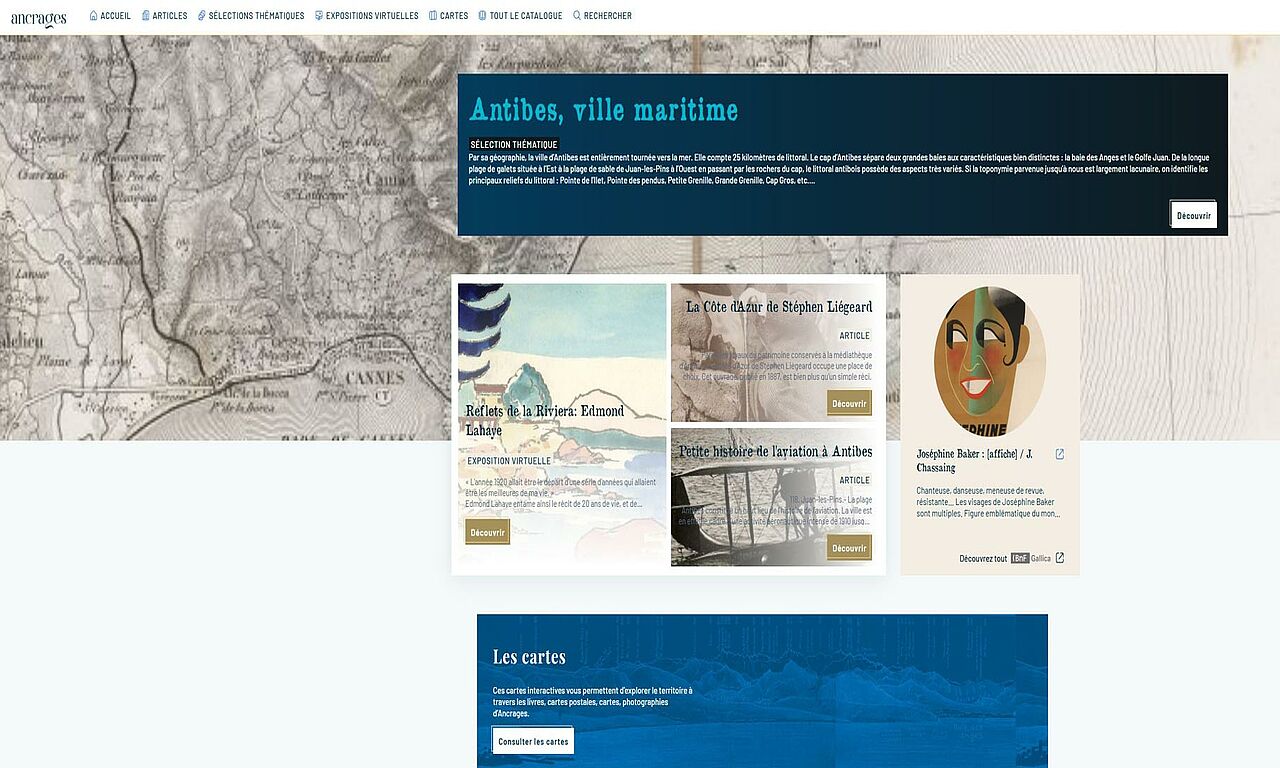 Les visiteurs pourront également découvrir des expositions virtuelles, comme celle réalisée avec la coopération des Archives départementales, sur l’artiste Edmond Lahaye, témoin privilégié du Juan-les-Pins des années 1920. De même, des sélections thématiques sont proposées sur des facettes de la vie locale : l’aspect maritime, le patrimoine architectural, les figures culturelles, etc. Enfin, une approche cartographique invite à la découverte localisée des ressources.