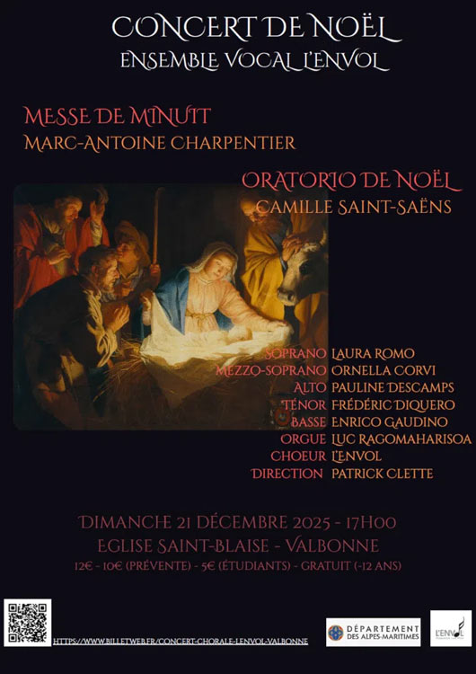 L’Ensemble Vocal L’Envol de Roquefort-les-Pins a le grand plaisir de vous offrir un très beau concert de Noël en vous proposant deux oeuvres majeures pour fêter la Nativité, composées à 2 siècles d’intervalle :