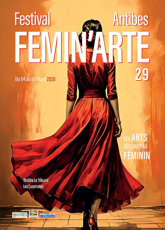 Ce festival consacré à la création au féminin, rencontre chaque année de plus en plus de succès. Il évolue au fil du temps. Partira, pour cette nouvelle édition, à la rencontre de comédiennes, d’humoristes, de plasticiennes. Il dévoilera des bâches rendant hommage à des femmes de talent, trop souvent méconnues. Il dévoilera les trésors d’Antibes avec l’exposition de groupe « Détails d’Antibes ».