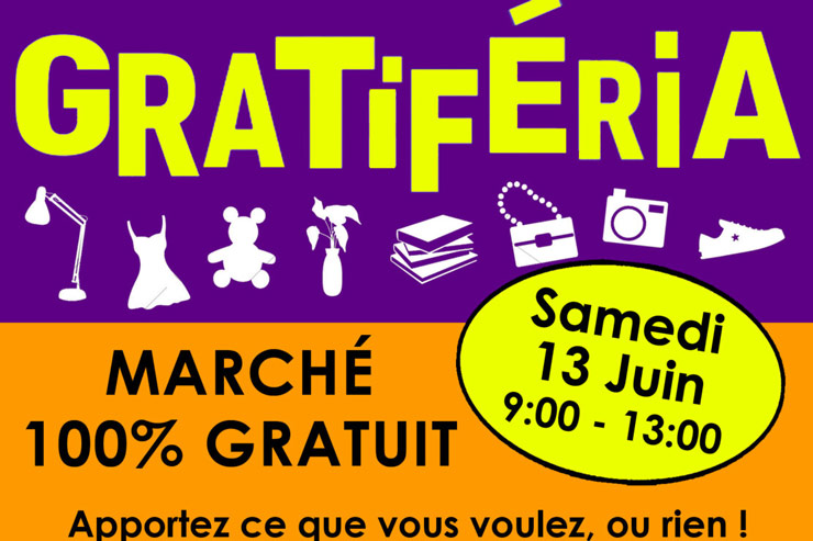 La Gratiféria se déroulera au Jardin Tajasque (face à la Police Municipale, sur la place de la Libération). Venez nombreux !