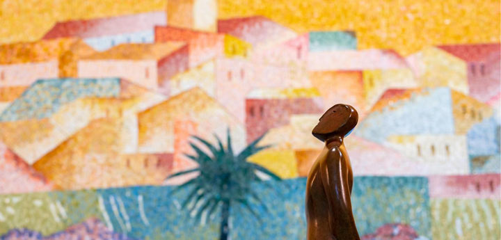 La visite de la chapelle décorée par l'artiste Jean-Michel Folon est avant tout un voyage. Il aimait d'ailleurs se définir tel un "agent de voyages imaginaires". Entrez dans l'univers poétique de Folon en empruntant les chemins symboliques qu'il a délibérément tracés pour la chapelle des pénitents blancs.