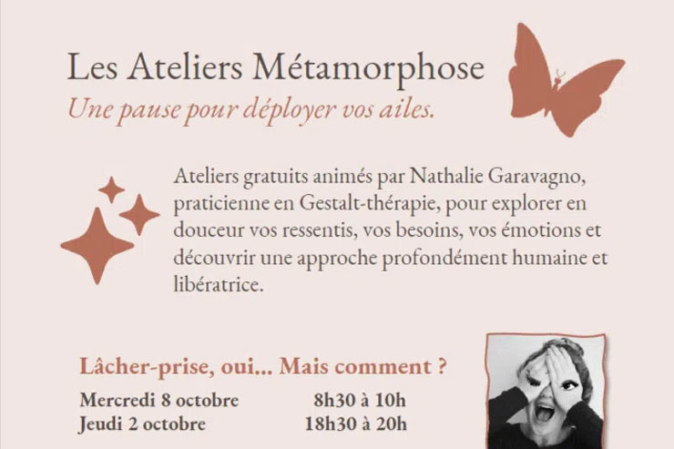Ateliers gratuits animés par Nathalie Garavagno, praticienne en Gestalt-thérapie, pour explorer en douceur vos ressentis, vos besoins, vos émotions et découvrir une approche profondément humaine et libératrice.